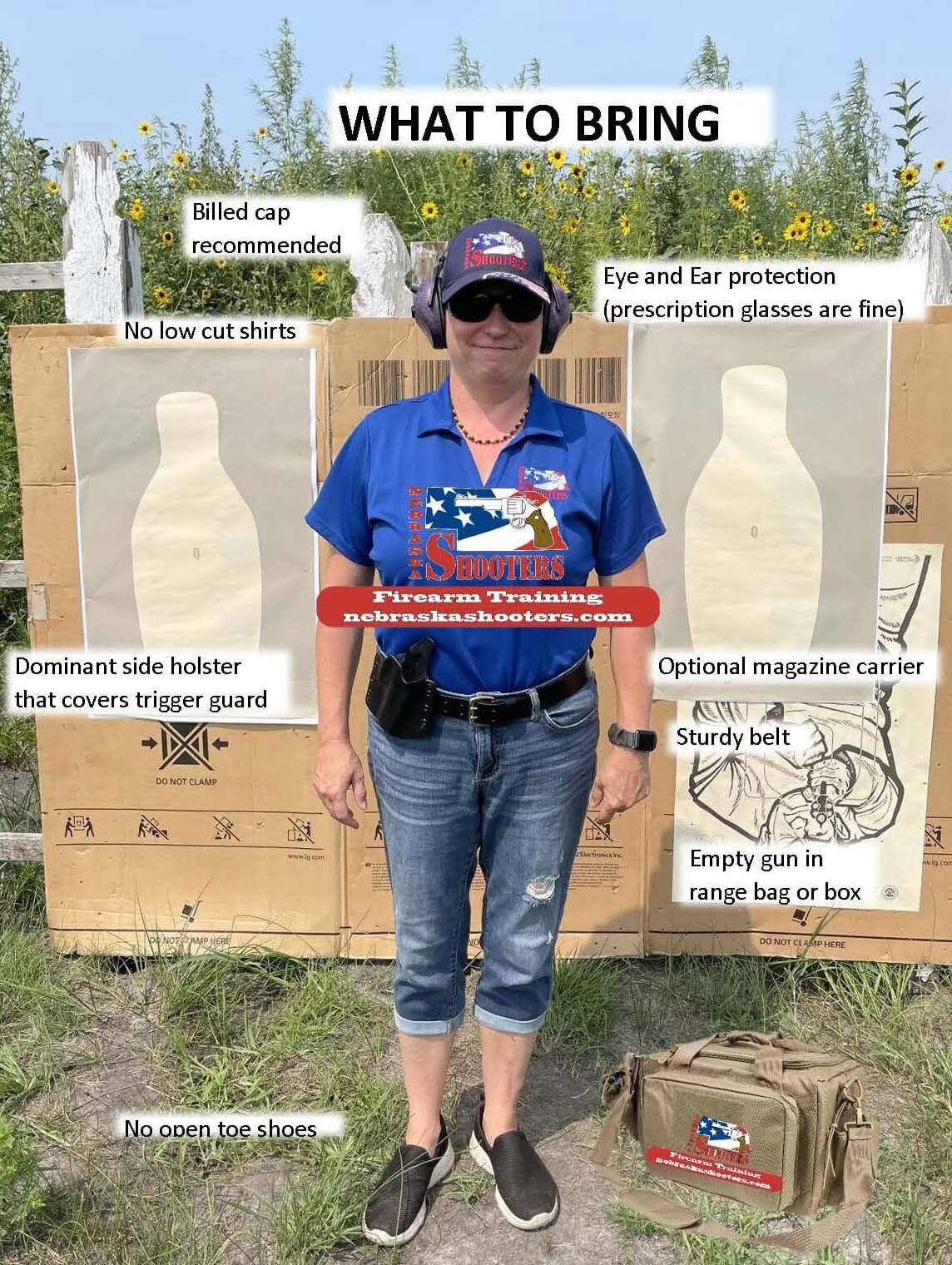 If you need to borrow a handgun and holster, we can provide you with the equipment and you will just need to bring ammunition and let us know ahead of time. . Drinks and snacks will be available throughout the day. Also, please bring a billed cap and no low cut shirts to catch hot brass.